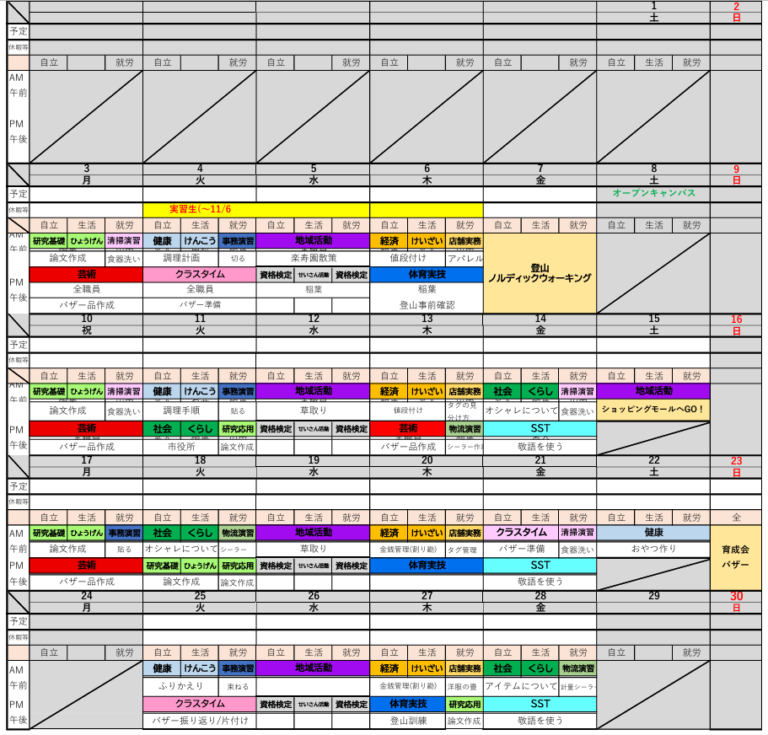 (M氏)まず、大きくみらいカレッジのシステムについてです。4年制で最初の1.2年は自立訓練の期間、自分自身を磨いて人間力を高める期間とされており、3.4年は就労に向けた期間、社会人としての期間として設けられているそうです。高校を卒業した後、働くか働かないかという選択肢しかなかった障害者にとって新しい選択肢となる「学ぶ」という場を提供しているのが新しくとても興味深い活動だなと感じました。
