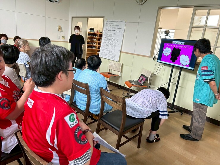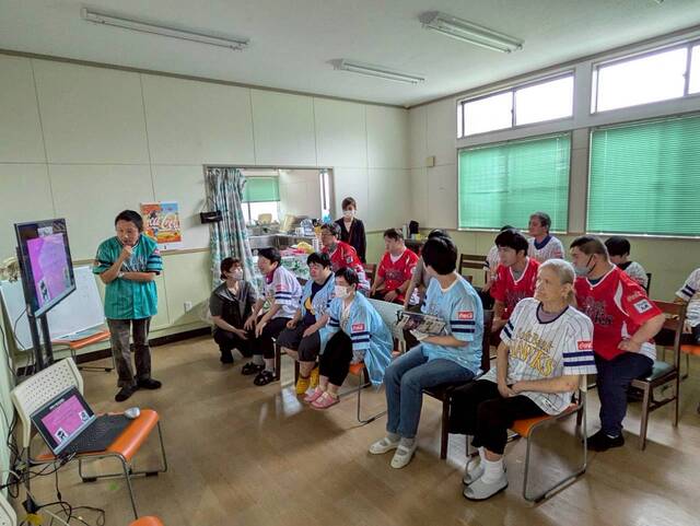 さらに「ジェスチャークイズ」ではペアになって動きを表現し、画面越しにみんなで笑顔になりましたヾ(≧▽≦*)o途中、音声が聞き取りづらい場面もありましたが、その都度「もう一度お願いします」と司会役の利用者さんがしっかりと進行✨