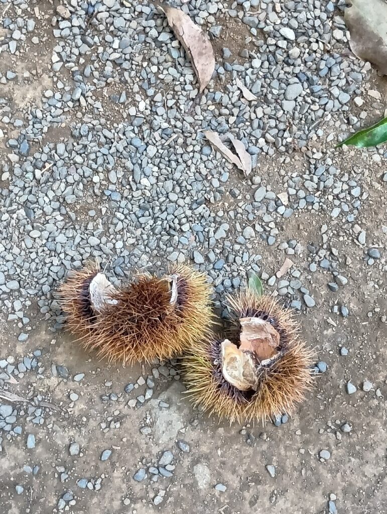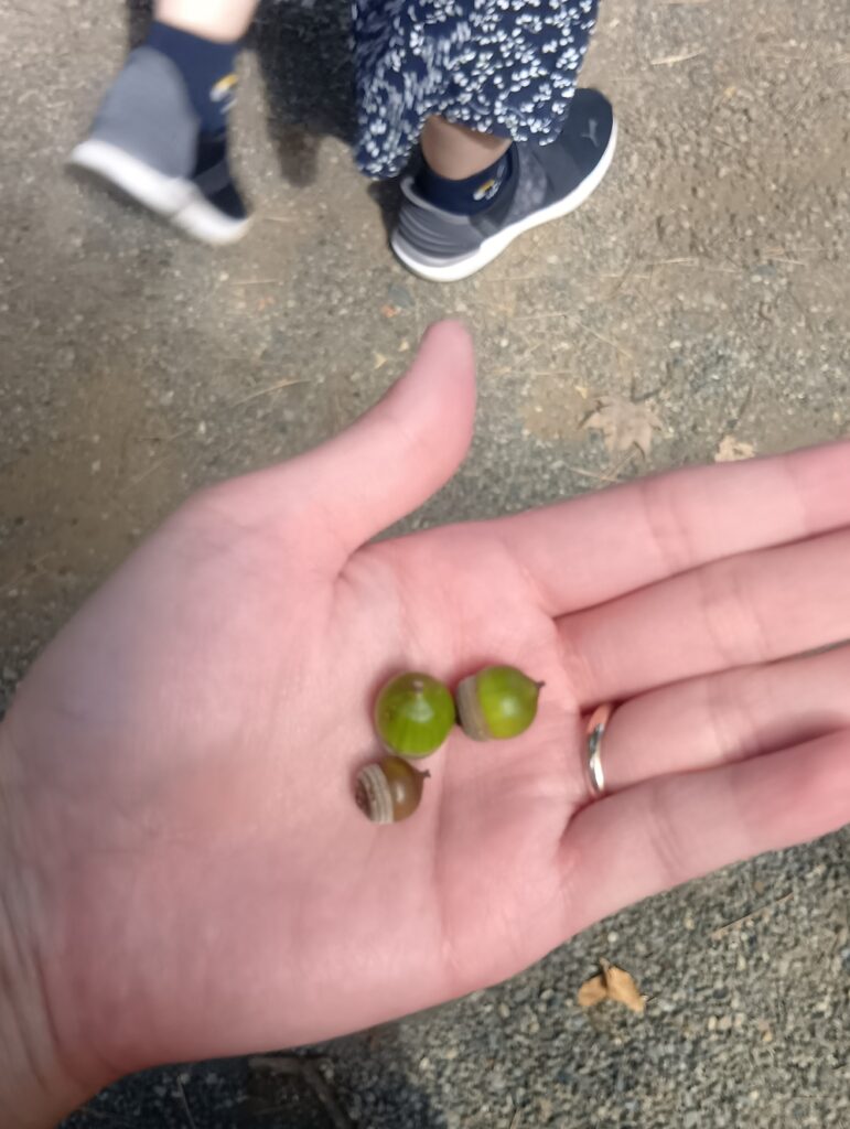 早速利用者様がドングリやいがぐり🌰を見つけます。