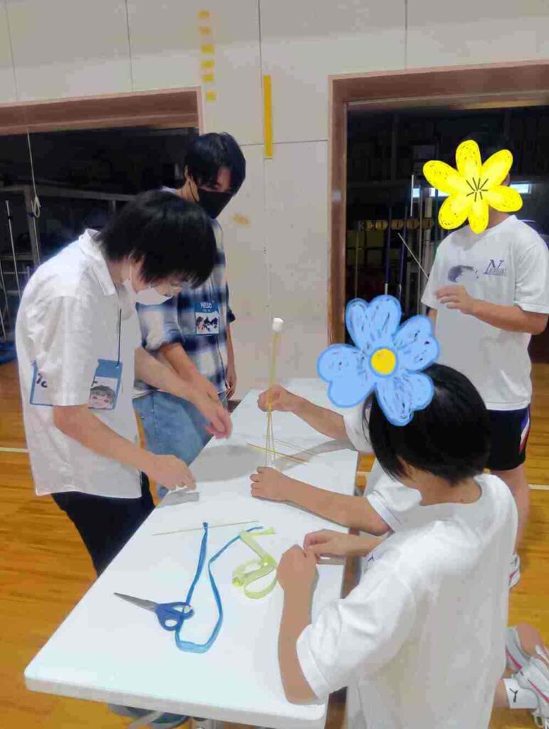 お互いの活動紹介を終え、自己紹介や、チームに分かれマシュマロタワーに挑戦したり・・・