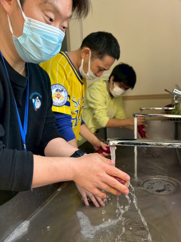 事前に焼き芋の作り方をみんなで確認し、まずはお芋をしっかり洗うところからスタート!