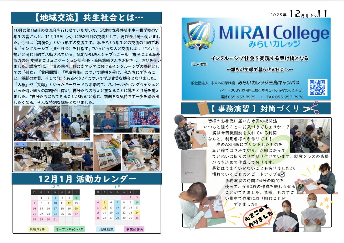 地域との交流を大切にしている三島キャンパスらしい様子が掲載されておりますので、是非ご覧ください。