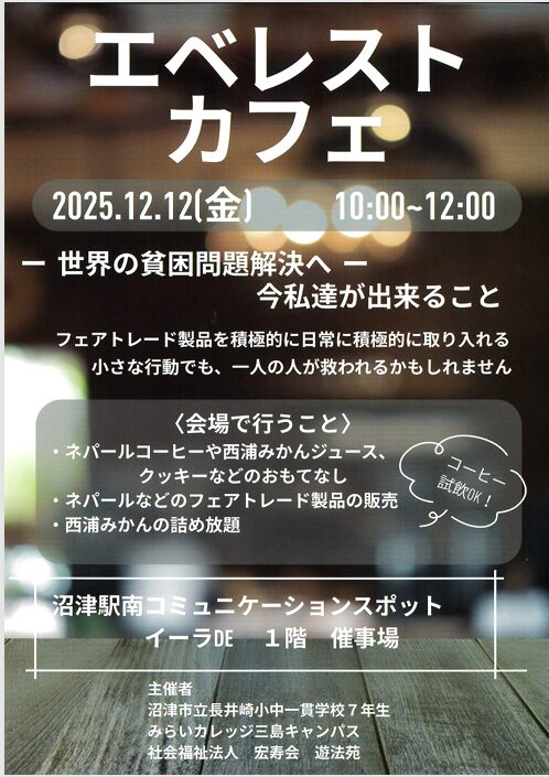 沼津駅前のイーラde沼津にて、フェアトレードコーヒーを使用した喫茶を開催いたします。