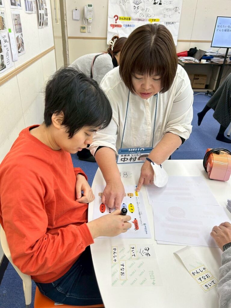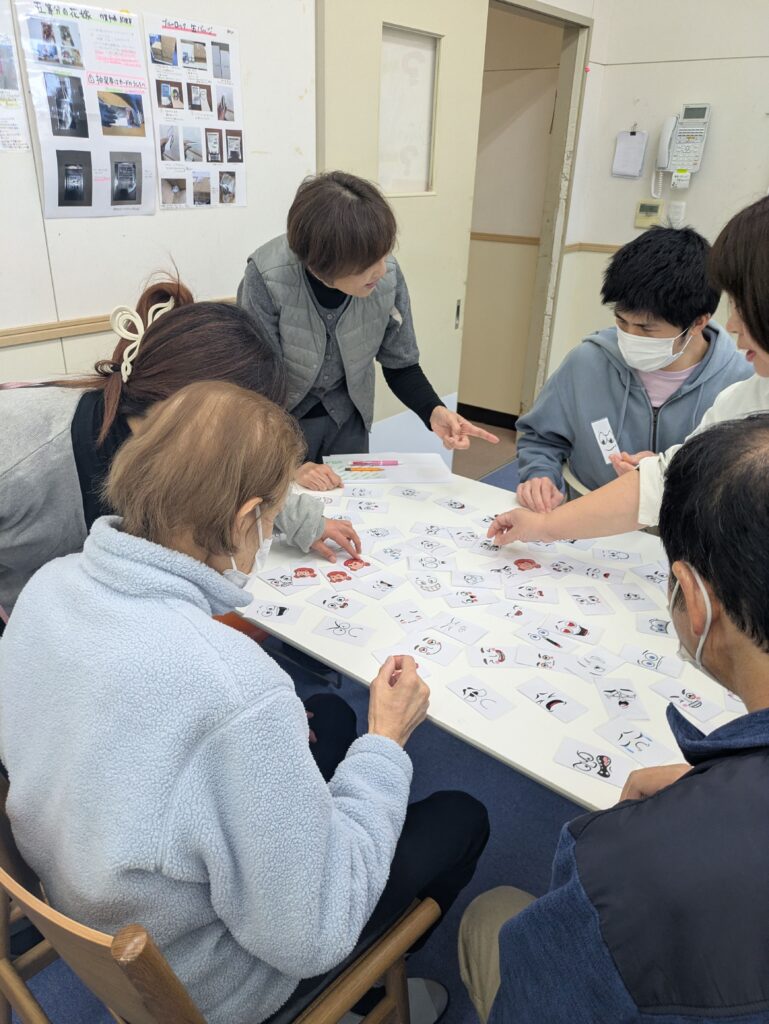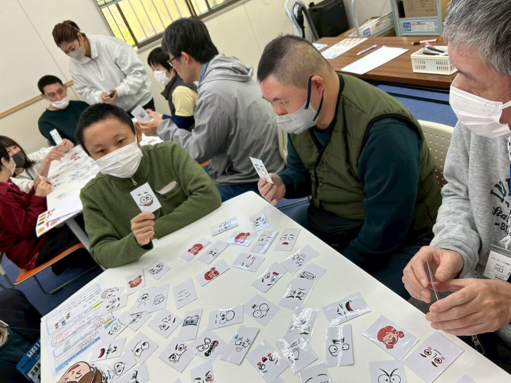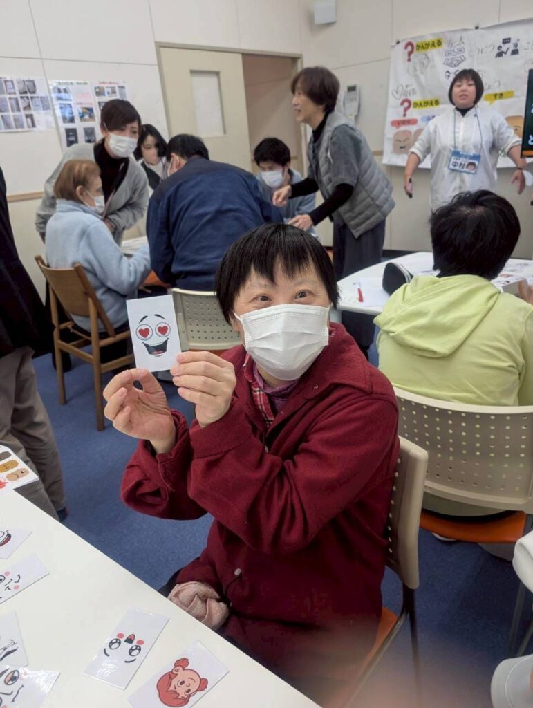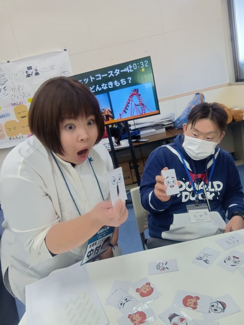 職員がお題を出し、利用者さんは自分の気持ちに近い表情のカードを選びます。