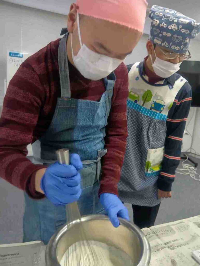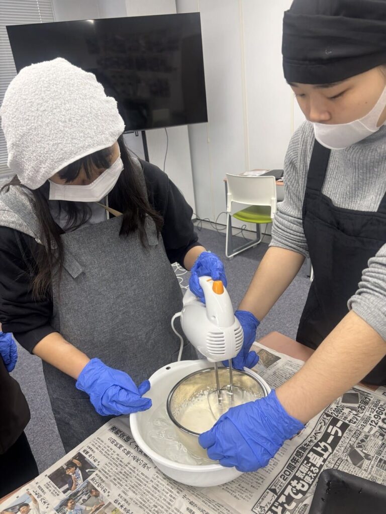 1分ごとに機械と手作業とで交代をしながら、みんなで根気強く、気合を入れながら泡立てに力を注ぎました✨