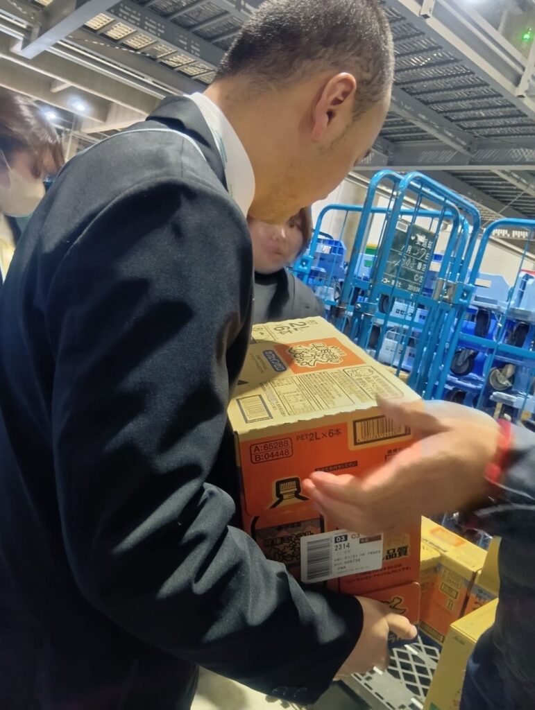 ペットボトルやお菓子の商品が入っている段ボールの重さを確認させて頂いたり、色々な経験をしました