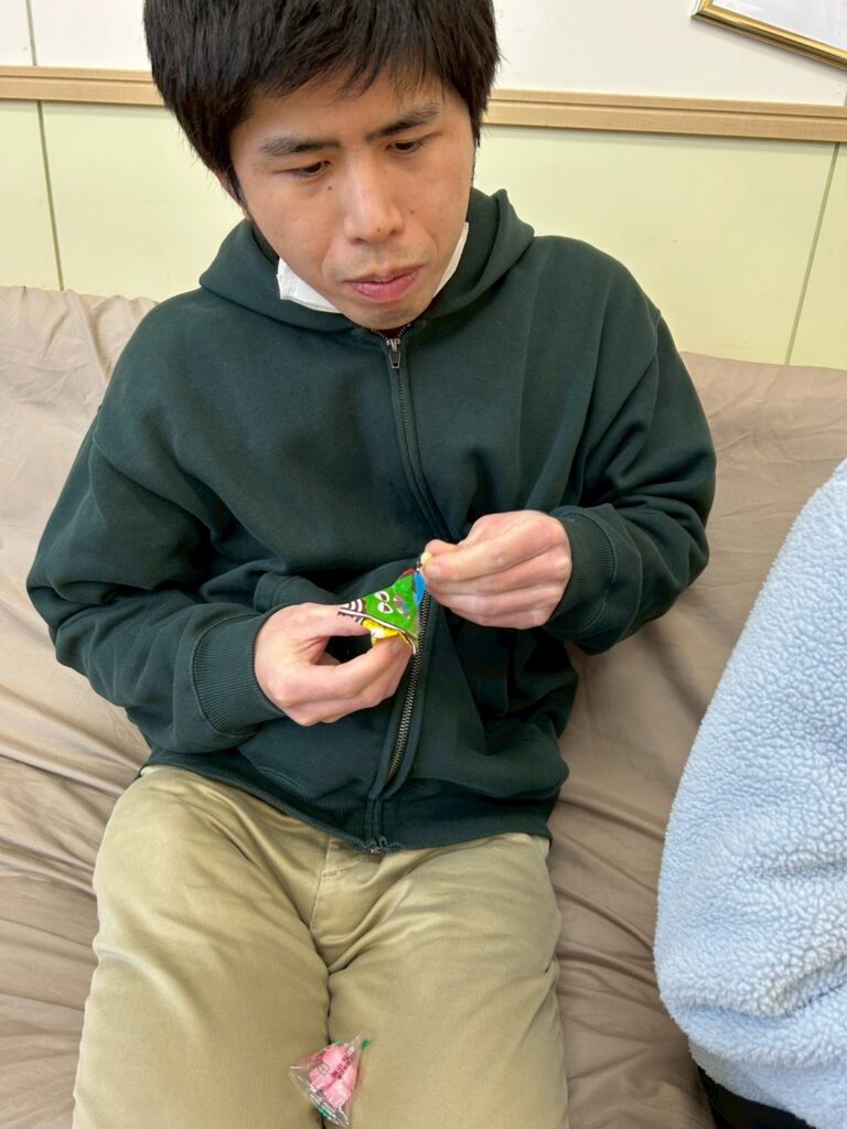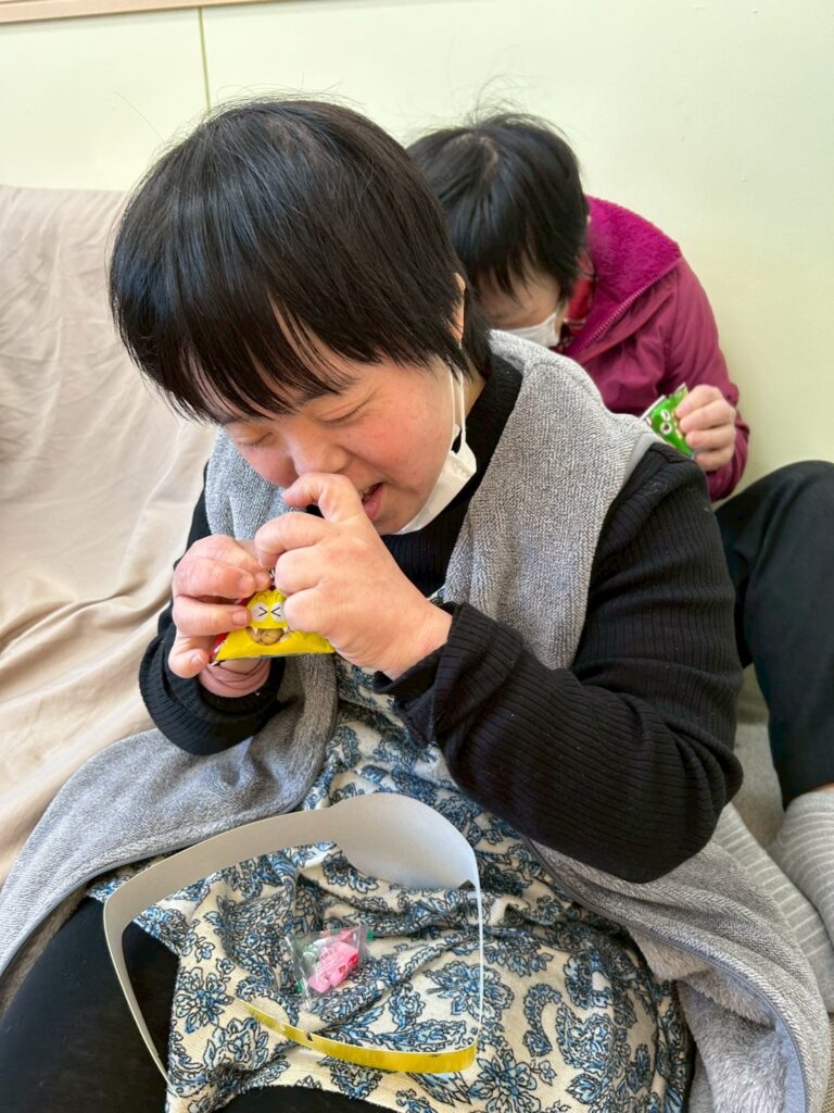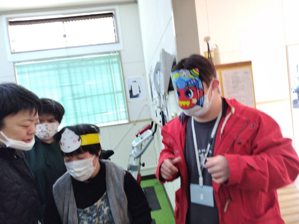 利用者さんも自然と笑顔になり、「鬼は外!福は内!」の掛け声とともに、元気いっぱい豆を投げていました。