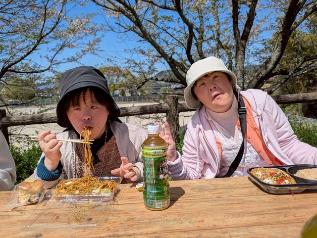 余暇活動 ~お花見~ 投稿日 2026.04.23 著者 mirai-kakehashi カテゴリー 宇美キャンパス 4月8日(水)月1回の郊外行事でお花見に行きました🌸✨🌸✨ 道の駅筑前みなみの里に寄りお昼ご飯とデザートを購入し、甘木公園に行きました🚐🛝 桜は満開を過ぎ桜吹雪が舞い心地よい風が吹いていました☺️😄 好きなお弁当にデザートを食べた後は散策へ🍀🍀 桜吹雪の中公園内を散策したり遊具で遊んだりと皆さんそれぞれ春を体感しながら楽しまれていました🤗🎶🎵 YouTube Instagram X Facebook
