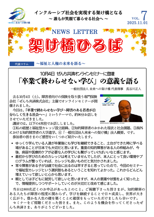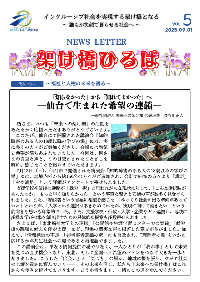 皆様のご理解とご協力を賜り、一緒に「架け橋」となる一歩を踏み出せることを心より願っています。